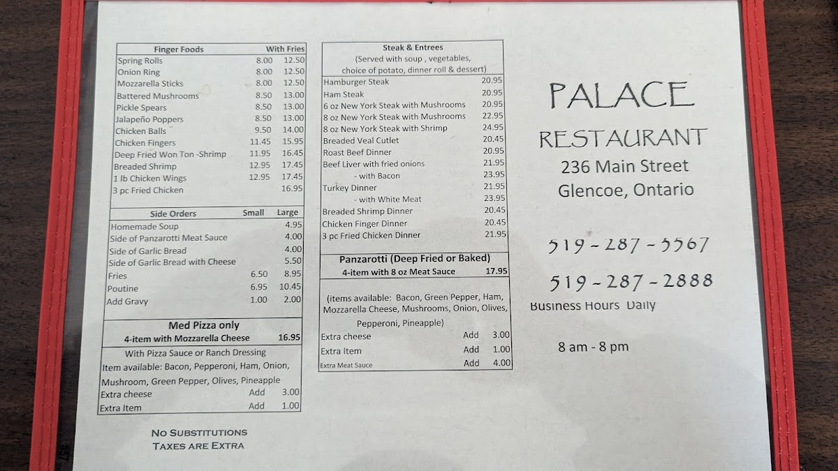 At Palace Restaurant The, located in Glencoe, Ontario, culinary delights await every guest. The menu showcases a delightful variety of options, where quality meets affordability. Diners rave about the fish and the delicious canzone, with many returning for their favorites. The Northern Chicken sandwich and panzerotti have elevated the dining experience, reflecting authentic flavors and generous portions.